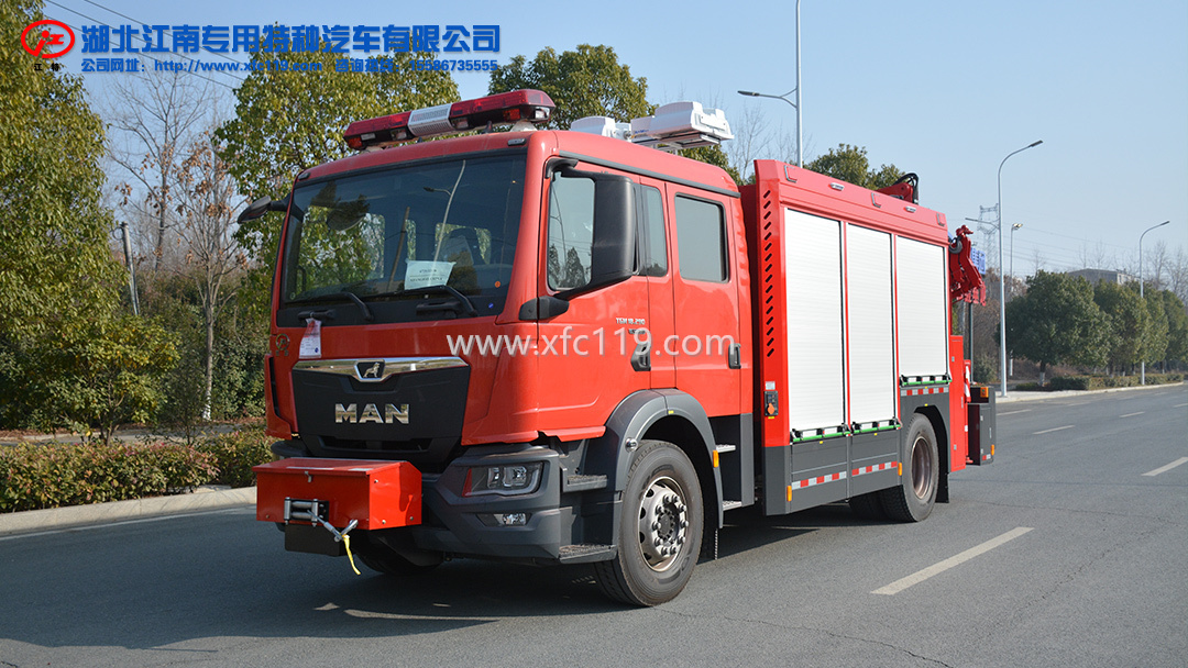 MAN搶險救援消防車為國六消防車車型,是我公司湖北江南專用特種汽車有限公司應用新技術(shù)、新工藝,自主研制開發(fā)的具有自主知識產(chǎn)權(quán)的最新消防車產(chǎn)品,該搶險救援消防車系選用德國曼恩商用車有限公司生產(chǎn)的TGM18.290二類汽車底盤改裝而成,原裝雙排駕駛室,可載含駕駛員在內(nèi)的乘員6人,駕乘舒適輕便。 根據(jù)用戶需要可配備有偵檢類、警戒類、救生類、破拆類、照明類、個人防護類各種搶險救援器材。器材安裝在抽拉拖板、立式抽拉、旋轉(zhuǎn)拉架上。整車線型流暢、外觀新穎、美觀大方、器材布置合理緊湊、取拿方便,是消防部隊和企業(yè)進行搶險救援領(lǐng)域的好幫手。