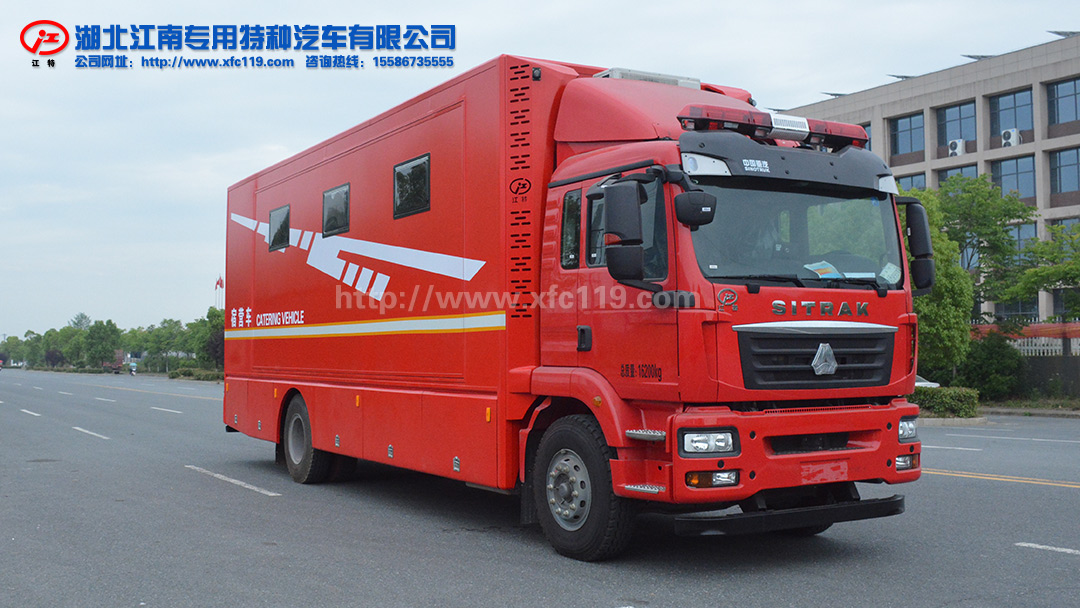 整車上裝為整體式框架結構,龍骨采用優質型材焊接,外蒙皮為航空鋁材,廂體四壁和頂板均為真空負壓復合板材結構,廂體外廓采用專用鋁型材包角,滿足輕量化和整車強度要求。車輛頂部四周配備頻閃警燈及場地照明燈,下裙邊設計有專用雜物艙;車門、艙門均采用專用型材結構,可靠性高并具有良好的密封性。廂體內采用優質塑膠地板,防滑防腐耐酸耐堿;廂體四壁及頂部骨架填充隔音隔熱材料,室內裝飾采用綠色環保材料,造型美觀易于清洗,防火阻燃等級符合GB8624B1標準。整車優質烤漆工藝主色為消防紅,可以根據用戶需求設計軍警制式外觀車貼。