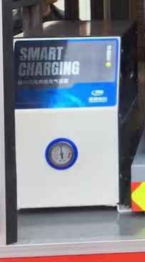 5.10自動分離式充電充氣裝置:自動充電充氣裝置采用用蘇州怡達新能源科技有限公司YD-SES30A型自動脫離充電充氣系統,由自動繞線器提供的220V電源,通過分離式彈性插頭給車輛供電供氣,當電瓶充滿、儲氣罐壓力達到設定值后系統自動停止工作,當需要出動車輛時,駕駛員只需打開啟動鑰匙,車輛啟動時分離式彈性插頭自動與車輛充電充氣接口分離,當出現異常情況不能自動分離時,會發出聲光報警提醒駕駛員查看故障或手動分離,達到快速出動車輛的目的。