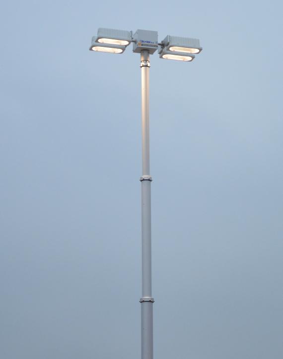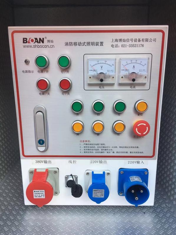 發電照明區左側器材艙布置有平式拓展板裝載汽油發電機,給整車應急供電;右側器材艙布置有立式旋轉拓展板,方便消防員快速取用/收納器材和專用工具;中間布置有大功率高桿升降照明裝置,為救援現場提供場地照明和指向照明,為救援現場提供可靠保障。